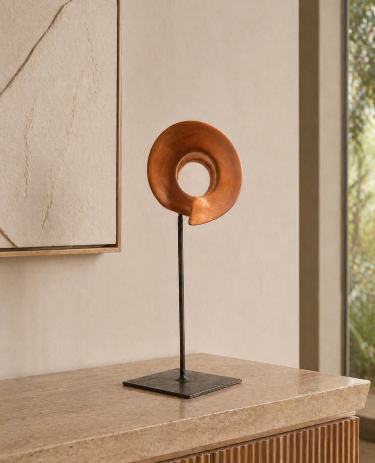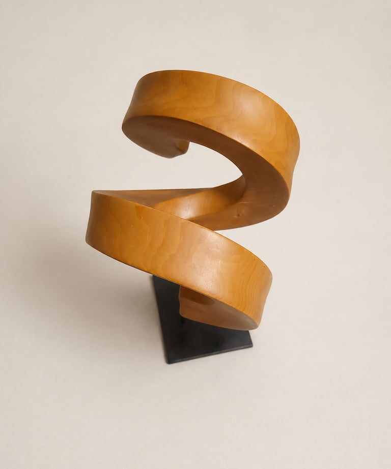 Escultura contemporánea en madera y metal