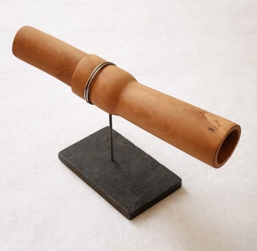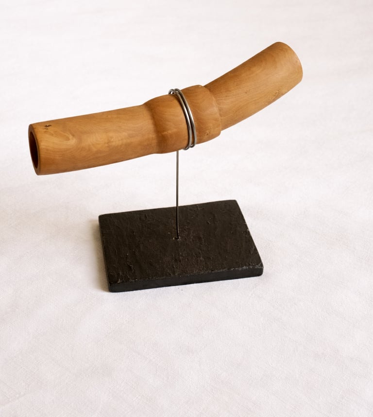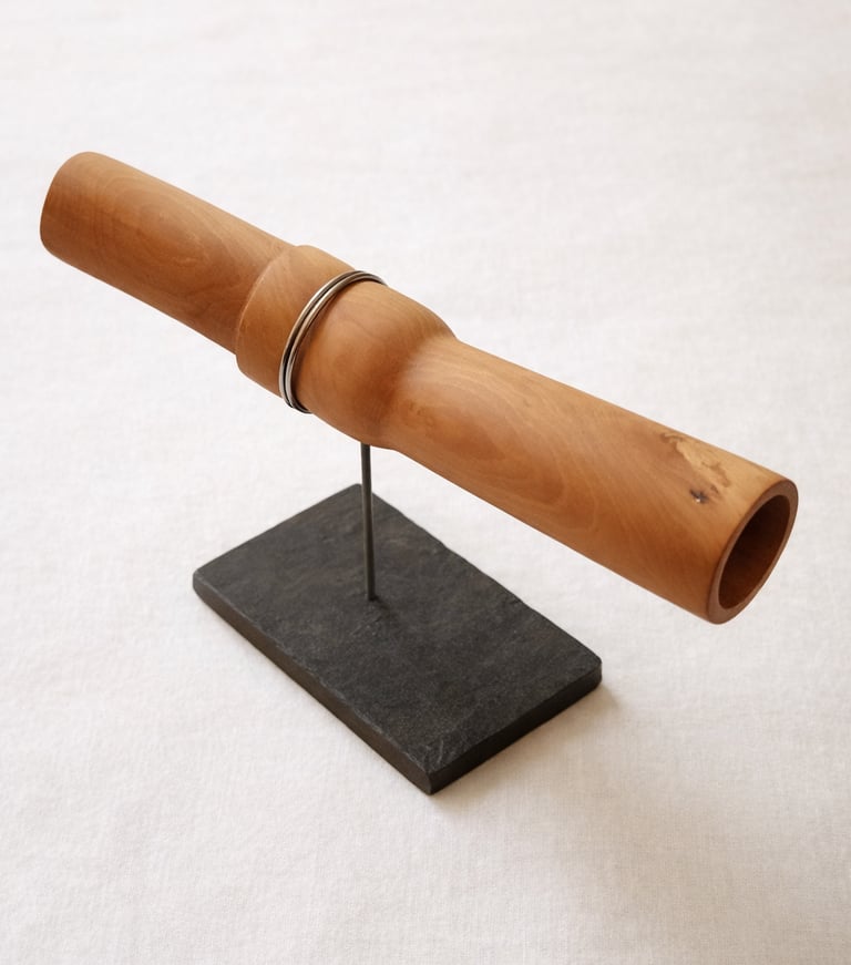 Escultura construida a partir de un volumen horizontal intervenido por un gesto de embutimiento. La pieza concentra su lectura en la presión ejercida sobre la forma, en el modo en que la materia se contrae, se ajusta y desplaza su continuidad.