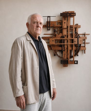 Matías Díez Ochoa desarrolla una obra escultórica centrada en la estructura, el equilibrio y la materia. A través de la madera y el metal, construye piezas de lenguaje propio en las que el ensamblaje, la proporción y la tensión entre los elementos determinan la forma final.