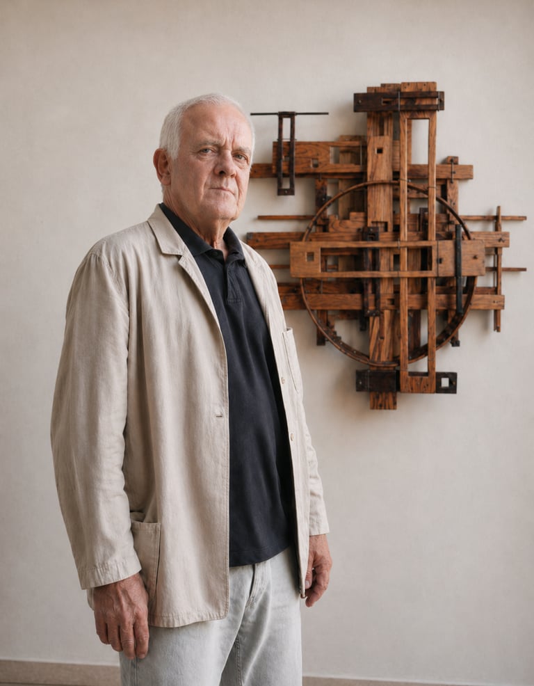 Su trabajo abarca obra mural, piezas de sobremesa y propuestas con una dimensión más funcional, siempre desde una atención rigurosa a la construcción y a la singularidad de cada pieza. En esa continuidad entre escultura, diseño e inventiva, su obra rehúye lo meramente decorativo y afirma una presencia precisa, sobria y reconocible.